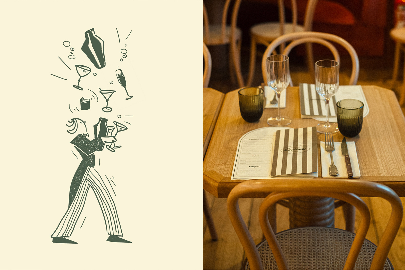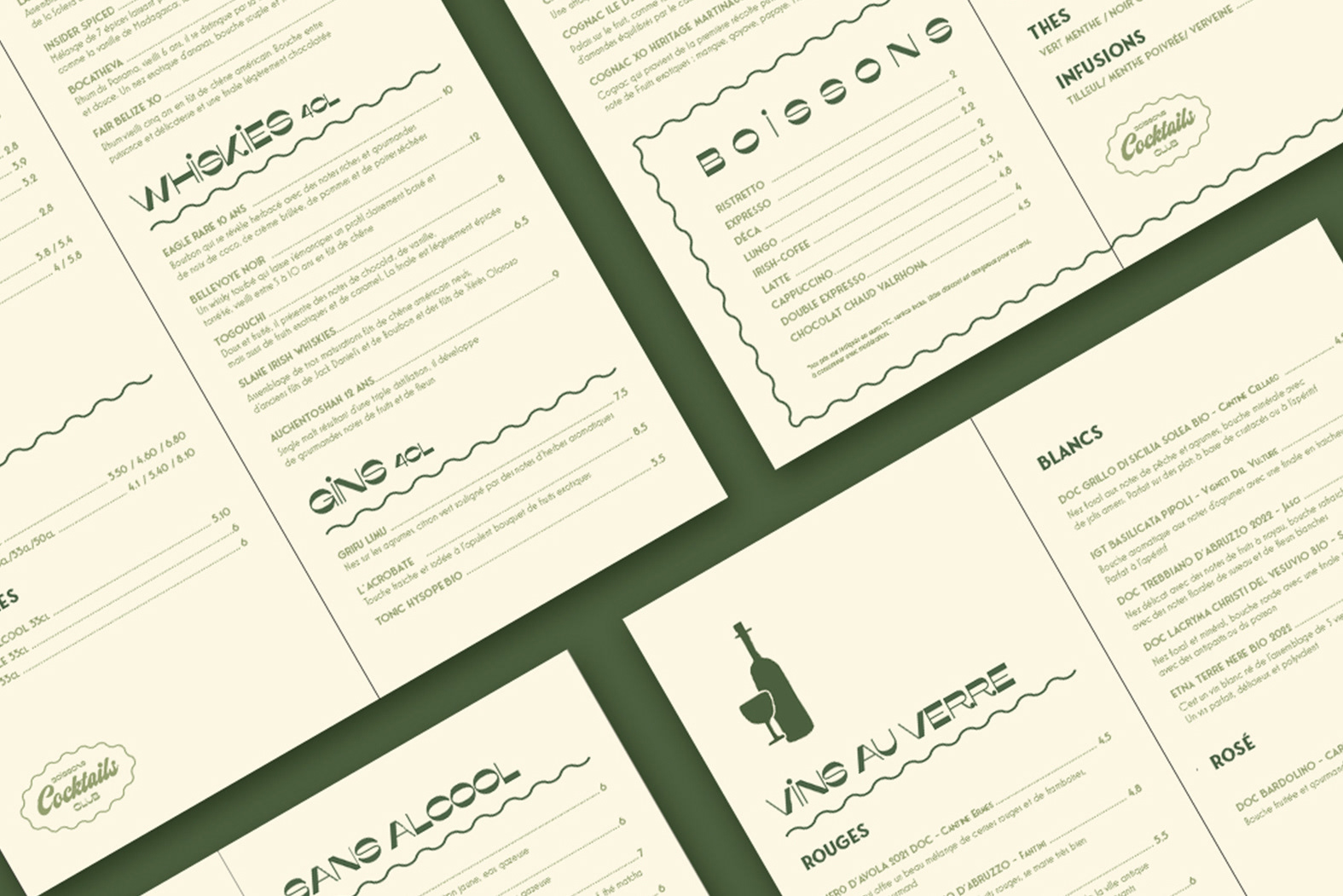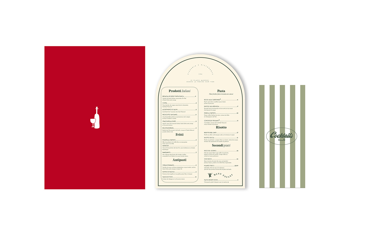 Chaque document a été pensé comme une extension de l’identité du lieu, en traduisant visuellement son univers : une trattoria contemporaine, élégante et conviviale, où la tradition italienne dialogue avec un design graphique soigné.