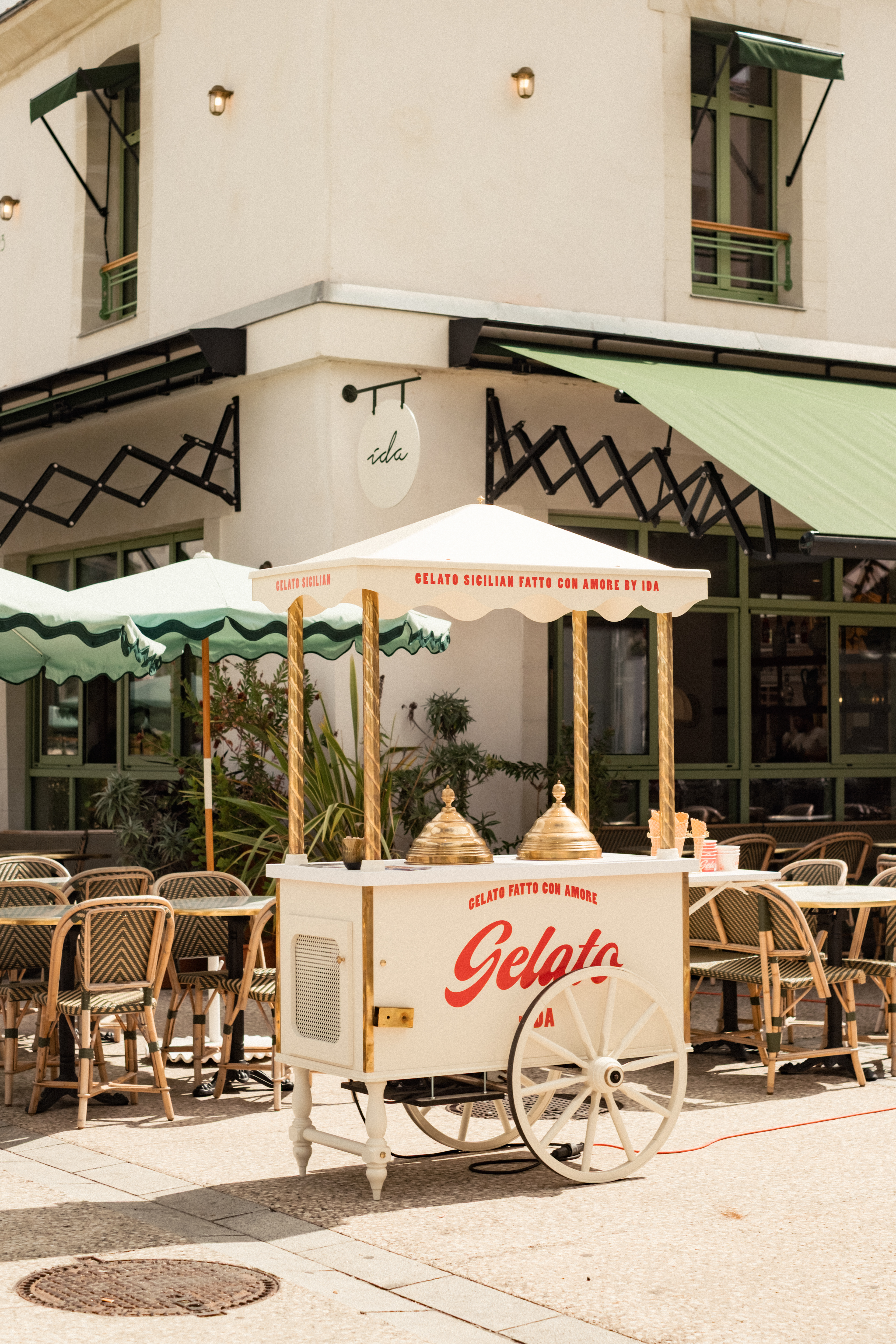 Le chariot, pensé comme une extension naturelle du restaurant, allie références italiennes, savoir-faire artisanal et touche contemporaine, offrant ainsi une expérience gourmande et identifiable dès le premier regard.
